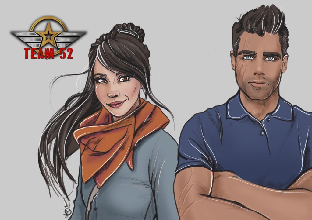 But wait, there’s more. I also have some custom artwork of grumpy scientist Ty and his heroine, River:
